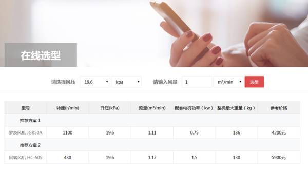 此外,還可以通過風機選型系統(tǒng)查詢回轉風機價格,如下圖客戶僅需輸入風量、選擇風壓,就可以方便、快速、準確、可靠地進行羅茨鼓風機、回轉式鼓風機等各類容積式風機的選型和價格查詢工作。風機選型系統(tǒng)地址:http://m.kracher.cn/search.php